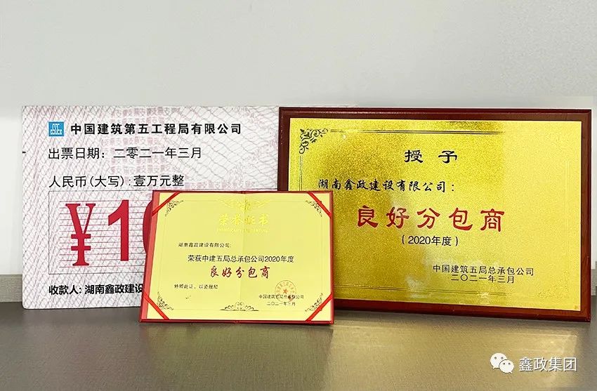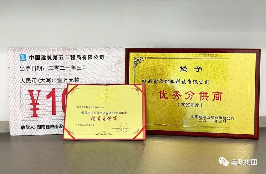 瀏覽次數(shù):854喜訊連連捷報傳。近日,在中建五局總承包公司2021年分包(供)商答謝會暨優(yōu)秀分包(供)商表彰會上,集團下屬子公司湖南鑫政鋁業(yè)科技有限公司與湖南鑫政建設有限公司分別喜獲2020年度“優(yōu)秀分供商”與“良好分包商”獎項。